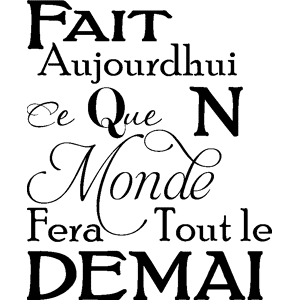Des stickers muraux citations pour la déco ! Avec les stickers citation et ce sticker Fait aujourd'hui ce que le monde fera tout demain, vous pourrez enfin décorer l'intérieur de votre cuisine à votre guise avec leur aide ! Ayez toujours en vous l'envie d'avancer et de réussir mieux que les autres