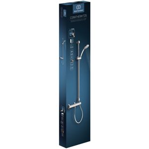 Ideal Standard Idealrain Ideal Standard Idealrain A7204AA AP DN 15 Clapet anti-retour DVGW à sécurité intrinsèque corps Cool Connexions en S recouvertes de rosaces métalliques coniques (réglables de 137-163 mm) Saillie de 80 mm Poignées en plastique Cartouche thermostatique avec élément d'expansion en cire Fonction anti-calcaire Réglage de la température de l'eau chaude avec protection anti-brûlure Régulation du volume d'eau avec bouton ECO économie et rondelles d'étanchéité en céramique Cartouche RV côté eau chaude avec soupape de surpression intégrée pour décompression (protection de la vanne) à des pressions supérieures à 16 bar Comportement au bruit DIN 4109 2000 composé de Barre de douche Fixation réglable en hauteur avec bouton poussoir pivotant Idealrain 3 fonctions Idealrain M3 Ø 100 mm Fonction anti-calcaire Flexible de douche Idealflex 1600 mm