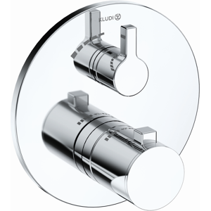 Kludi Nova Fonte thermostat de bain 208103915 Bel ensemble de construction avec unité fonctionnelle avec robinet d'arrêt en céramique Débit cuve 28 l/min à 3 bar Débit de douche 24 l/min à 3 bar Commutation en vanne rotative pour 2 consommateurs Blocage eau chaude 40 °C Veuillez commander le corps encastré 88022 séparément - non compris dans la livraison