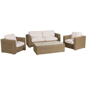 Salon de jardin 5 places en rotin synthétique taupe. Article en rotin synthétique/aluminium/mousse effilochée, dacron, silicone. Dimension canapé : 201 x 86 x 68 cm/ fauteuils : 90 x 86 x 68 cm/ table : 141 x 76 x 42.5 cm. Détendez vous dans le calme de votre extérieur avec ce superbe salon de jardin cinq places en rotin synthétique. Sa couleur taupe tendance s'accordera parfaitement à l'ambiance déjà présent dans votre jardin. Composé d'un canapé, de deux fauteuils et d'une table basse pour vous offrir l'espace dont vous avez besoin pour vous reposer seul ou en famille.