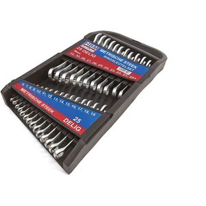 Avec ce set de 25 clés plates et à anneau métriques HBM, vous n'aurez plus jamais à chercher la bonne clé pour desserrer ou serrer des écrous et des boulons. Ce set comprend pas moins de 25 combinaisons métriques de clés plates et à anneau. Toutes les clés sont fabriquées en acier chrome-vanadium extrêmement résistant. L'ensemble est emballé dans un blister en plastique solide, vous permettant de garder vos clés toujours bien rangées.