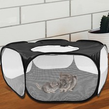 NONE Parc noir pour animaux de compagnie, 38 panneaux avec porte, escalier, boîtier extérieur à deux niveaux pour chats, lapins, cochons d'inde, chiots, chiens, bricolage