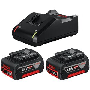 2 batteries de 18 V d’une capacité de 4,0 Ah pour plus d’autonomie et chargeur rapide Batterie de 18 V 4,0 Ah conférant plus d’autonomie a tous les outils 18 V Recharge tres rapide de toutes les batteries 18 V, ne met que 48 minutes a recharger a 80 % une batterie 18 V 4,0 Ah Compatibilité depuis 2008 : au sein de la meme catégorie de voltage, toutes nos batteries sont compatibles avec tous les outils électroportatifs nouveaux ou déja existants de Bosch Professional. Ce produit comprend Boîte carton 2 batteries GBA 18V 4.0Ah 1 600 Z00 038 Chargeur rapide GAL 18V-40 Professional 1 600 A01 9RJ CARACTÉRISTIQUES TECHNIQUES Données les plus importantes Tension de la batterie 18.0 V Type cellules Li-Ion Poids de la batterie 1* 0,619 kg Tension de charge de la batterie 14,4 – 18 V Courant de charge* 4 A Durée de charge approximative pour une capacité de batterie de 4,0 Ah (80 %/100 %)* 48/65 min Poids du chargeur* 0,55 kg Capacité de la batterie 1* 4 Ah>