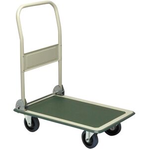 br>Chariot avec dossier pliable modèle grand plateau. > 2 roues fixes et 2 pivotantes ø 125 mm. > Dossier rabattable. > Plateau métallique (acier embouti renforcé). Avec tapis anti-dérapant et ceinture pare-choc PVC. > 4 roulettes avec bandage nylastic gris non tachantes, 2 roues fixes et 2 pivotantes, Ø125 mm Caractéristiques techniques > Charge maxi : 300 kg. > Roulettes avec bandage nylastic non tachant