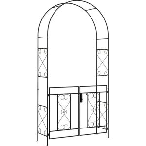 Description:Cette magnifique arche à rosiers avec portillon style fer forgé en métal époxy décorera parfaitement votre jardin ou terrasse grâce à ses belles lignes harmonieuses. De quoi en profiter pleinement pendant les beaux-jours ! Elle dispose de 2 portes permettant le passage entre deux espaces. Vous pourrez faire grimper de jolies plantes sur l'arche.caractéristique:● Arche à rosiers style fer forgé en métal époxy avec de très belles lignes harmonieuses; ● Arche avec portillon à deux portes battantes avec loquet pour créer un espace bien distinct et protéger vos plantes; ● Idéale pour installation dans votre jardin (chacune des extrémités de pied de l'arche sont en pic, très facile à planter dans votre sol); ● Fabriqué en acier époxy anticorrosion noir vous assurant une utilisation pérenne; ● Large et haute arche idéale pour la plantation d'un rosier, lierre, ou autre plante grimpante; ● Montage rapide et facile à l'aide du manuel d'assemblage illustré fourni;Spécification:● Couleur : noir; ● Matériau : acier; ● Dimensions totales : 114L x 36l x 232H cm; ● Dimensions intérieures : 112L x 221l cm; ● Dimensions de chaque battant de porte : 54l x 80H cm; ● Réf. : 844-759V00BK;contenu du colis:● 1 x Arche de jardin; ● 1 x Jeu d'accessoires; ● 1 x Manuel;