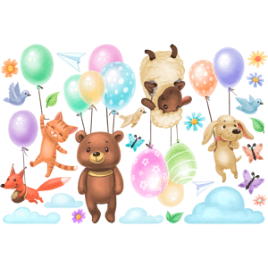 Des stickers animaux pour votre déco ! Avec les stickers muraux animaux multicolore et ce Stickers animaux envolés en ballons, vous vous approprierez enfin votre intérieur ! Dimensions des stickers animaux : Ce sticker déco chambre enfant se compose de : 1 sticker renard en ballon, 1 sticker chat e