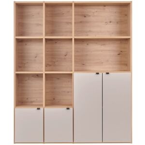 Esthétique et fonctionnelle : une bibliothèque qui s'adapte à vos envies.Avec ses lignes sobres et son design épuré, la bibliothèque 4 portes Marlone allie parfaitement praticité et esthétique. Elle se distingue par sa capacité de rangement bien pensée : des portes pour dissimuler ce que vous ne souhaitez pas exposer, mais avec des rangements ouverts pour valoriser vos plus beaux livres ou objets déco.Grâce à sa finition en décor bois chêne sauvage et à ses façades disponibles en coloris perle ou carbone, elle apporte une touche chaleureuse et contemporaine à votre pièce. Le contraste entre rangement ouvert et fermé permet de structurer visuellement l'espace, tout en offrant une vraie solution de rangement au quotidien.Parfaite dans un salon ou un bureau, la bibliothèque Marlone 4 portes s'intègre facilement dans votre intérieur tout en vous laissant le choix de personnaliser l'agencement des portes lors du montage.-Structure et finition :- Structure en panneaux de particules mélaminé chêne sauvage de 25 mm d'épaisseur- Fond rainuré mélaminé de 8 mm d'épaisseur- Portes en panneaux de particules mélaminé perle ou carbone de 19 mm d'épaisseurInformations et dimensions utiles :- Fixation murale : oui- 6 petites et 3 grandes étagères- LHP intérieure pour petite étagère : 40 x 49 x 37,6 cm- LHP intérieure pour grande étagère : 81,6 x 49 x 37,6 cm