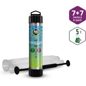 Un emballage pratique 2en1 contient un filet de 25 mm et 35 mm, deux tubes et un poussoir. Un filet PVA se dissout plus rapidement et il est idéal pour la pêche pendant les mois plus froids, mais aussi pour l'utilisation dans les eaux peu profondes quand votre montage prend plus de temps pour tomber au fond. Grâce au tressage de qualité, le filet ne se déchire pas et il est possible de le remplir avec des particules très fines. Ainsi, vous pouvez avoir votre leurre et votre esche sur un montage. Deux tubes et un poussoir font partie d'emballage et facilitent le remplissage d'un sac PVA. Un sac PVA va dissoudre dans l'eau dans un temps dépendant de sa température et ainsi, il va libérer son contenu à proximité de l'appât. Ce dernier sera beaucoup plus attractif pour les poissons. Attention : Les produits PVA sont solubles dans l'eau, pour prévenir l'endommagement, on conseille la manipulation avec les mains sèches seulement. Informations techniques : Diamètre : 25 mm (étroit), 37 mm (large) Longueur : 7+7 m Solubilité : environ 40 secondes/l'eau de 5 °C