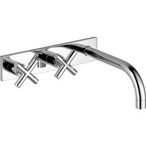 Tara Dornbracht avec plaque de recouvrement Tara . 3671489200, bec verseur à droite, saillie 190 mm, chrome, couvercle et disposition de poignée asymétrique, kit de montage final, bec rigide 2000 / 2 ", 2 x Control Céramique de salle de bain - Oberteile 2000 / 2", avec 2 manchons en laiton, couvercle 255 x 55 mm, veuillez utiliser le corps dissimulé 3571497090 commandez aussi.