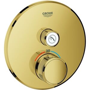 Grohe Jeu de décoration Grohtherm Smartcontrol 29118GN0 pour Rapido SmartBox 35 (600) Rosace murale en métal avec QuickFix avec Rosetten caché et joints d'arbre fixation dissimulée peut être ajusté 6 ° plus tard Surface StarLight SmartControl : SmartControl / arrêt en appuyant sur un bouton et contrôle du volume en tournant symboles interchangeables Cartouche compacte TurboStat avec thermocouple d'expansion Verrouillage de sécurité SafeStop à 38 ° C Limite de température en option à 43 ° C ou 46 ° C Rückflussverhinderer et pièges à poussière sans Rückflussverhinderer corps en Rückflussverhinderer Débit sortie A (en connexion avec une vanne d'arrêt séparée) = 34 l / min Sortie B / C = 29 l / min