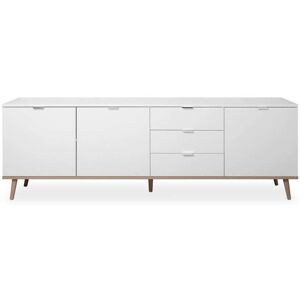 Caractéristiques produit: Buffet bas, 3 portes, 1 étagère à gauche, 1 à droite, 3 tiroirs au centre. Couleur Blanc / chêne sonoma. Réalisé en Panneaux de particules, pieds en bois massif, poignées métal. Fabriqué en Europe (Pologne). Dimensions produits: Longueur 200 cm x Hauteur 68 cm x Largeur 40 cm. Dimensions colis : Colis n°1 : Largeur 210 cm x Longueur 48,5 cm x Profondeur 7,5 cm - Poids brut : 26,7 kg. Colis n°2 : Largeur 135,5 cm x Longueur 58 cm x Profondeur 9,5 - Poids brut : 27,1 kg.