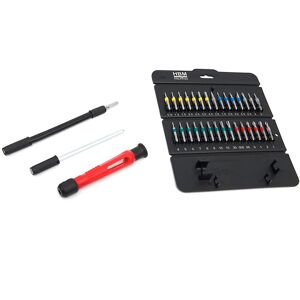 HBM Coffret de tournevis pour bijoutier 32 pièces a été spécialement conçu pour les travaux de très grande précision sur les montres, lunettes, appareils électroniques et autres composants délicats. Le coffret contient une large variété d’embouts : PH 000 à 2 (rouge), fendu 1 à 4 (bleu), hexagonal de 0,9 à 4 mm (jaune), Torx T4 à T20 (vert), ainsi que des formes spéciales comme U 2.6, IPS 2–5, Tri-wing 2.3 et Y1 (gris). Grâce au code couleur astucieux, l’embout adapté se trouve en un clin d’œil. Compact, clair et prêt pour tous les travaux de précision.