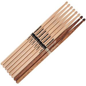 Pro Mark 5B Reb. Hick.+ Firegrain Bonus, Pack de 4 paires de baguettes, 3 x RBH595AW Rebound 5B, 1 x R5BFG Rebound 5B FireGrain, En hickory, Olives en forme de gland, Longueur: 406,4 mm, Diamètre: 15,1 mm, Longueur des cols de 76 mm de sorte que le centre de gravité est plus proche de l'arrière des baguettes pour créer plus de rebond