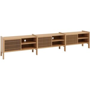 Voici notre meuble TV Mora fabriqué à la main avec pin massif naturel. Ses deux portes coulissantes en treillis et une étagère à l'intérieur, il vous offrira non seulement un espace élégant et fonctionnel pour abriter votre téléviseur, mais aussi un espace de rangement supplémentaire.* Finition : disponible en deux options, la première non vernie (totalement naturelle) et la seconde vernie (augmentant la dureté du bois mais conservant la couleur originale et naturelle des PHOTOS).Caractéristiques :- Charge totale maximale : 50 kg- Matériau : Bois de pin naturel massif. Certifié PEFC.- Utilisation à l'intérieur : Oui- Pour l'extérieur : Non- Nombre de portes : 2 portes coulissantes.- Ouverture des câbles : En option, SUR DEMANDE. Nous réalisons un maximum de 2 trous à l'arrière del meuble. Veuillez nous envoyer un message lors de la commande.- Nombre de tablettes intérieures : 1- Étagères intérieures réglables : Non, mais elles peuvent être enlevées.- Assemblage requis : Oui, facile, recommandées 1 personne.- Instructions d'assemblage : Vérifiez tous les accessoires avant de commencer l'assemblage. L'entretien du meuble varie selon qu'il est verni ou non verni.Pour la conservation de vos meubles non vernis:- Nettoyer la poussière avec un chiffon doux.- Utiliser du papier de verre très fin ou une gomme pour les taches superficielles et les petites rayures.- Évitez de le placer à la lumière directe du soleil et à des sources de chaleur intenses.Pour une protection optimale, nous vous recommandons d'utiliser de l'huile, de la cire ou du vernis.Pour la conservation de vos meubles vernis:- Essuyer la poussière avec un chiffon doux.- Évitez de le placer en plein soleil et à des sources de chaleur importantes.