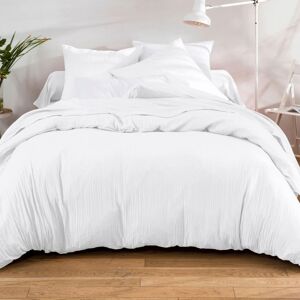 Endormez-vous dans une enveloppe de douceur avec cette housse de couette en coton blanc 140x200cm. Vous apprécierez cette housse de couette à rabat de 40 cm, conçue en double gaze de coton unieUne douceur exemplaire avec belle légèreté. Mixez les coloris pour composer un lit empreint de modernité et de style. Du linge de lit conçu en double gaze de coton joliment froissée pour un rendu authentique au tissage de 125 g/m2, lavable à 60°. Le repassage est superflu.Garantie 3 ans