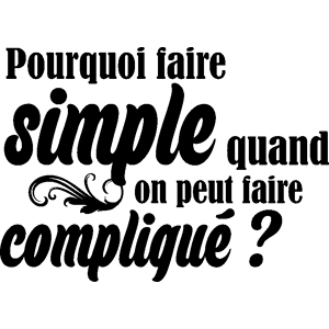 Des stickers muraux citations pour la déco ! Avec les stickers citation et ce sticker Pourquoi faire simple, vous pourrez enfin décorer l'intérieur de votre cuisine à votre guise avec leur aide ! Avec ce sticker Pourquoi faire simple votre salon aura un air plus sérieux et plus harmonieux tout en g