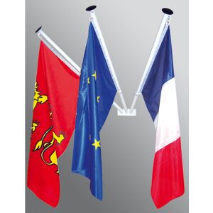 Mât de façade pour la pose de pavillons. Nous vous proposons un lot de mât de façade comprenant : - 1 support 3 places. - 3 mâts aluminium. - 3 pavillons 100x150 : 1 Français + 1 Européen + 1 Province ou Région au choix. SUPPORT MURAL - Réalisé en acier laqué blanc. - Modèle 3 places. - Buses di...