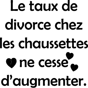 Des stickers muraux citations pour la déco ! Avec les stickers citation et ce sticker Le taux de divorce chez les chaussettes ne cesse d'augmenter, vous pourrez enfin décorer l'intérieur de votre cuisine à votre guise avec leur aide ! Donnez une raison suffisante pour vouloir faire votre chambre ou
