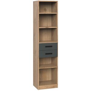 Découvrez notre Bibliothèque 5 étagères et 2 tiroirs - L47 cm. Parfaite pour apporter du rangement à la chambre de votre enfant, cette bibliothèque vous permettra de ranger des livres ou autres objets de votre choix. Son style industriel s'adaptera à tous les intérieurs et à toutes les décorations. Caractéristiques produit : 2 tiroirs rechampis graphite. 5 étagères. Matière principale: Panneaux de particules agglomérées décor chêne poutre rechampis graphite. Dimensions produit : Longueur 47 cm x Hauteur 198 cm x Profondeur 38 cm - Poids net : 42 kg. Dimensions colis : Colis n°1 : Largeur 39 cm x Profondeur 202 cm x Hauteur 10,5 cm - Poids brut : 44 kg.