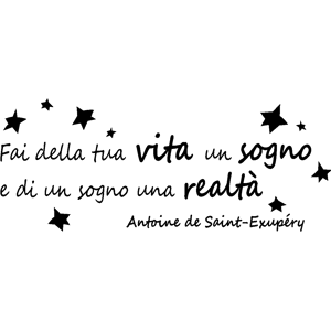 Des stickers muraux citations pour la déco ! Avec les stickers citation et ce Sticker Fai della tua vita un sogno - Antoine de Saint-Exupéry, vous pourrez enfin décorer l'intérieur de votre cuisine à votre guise avec leur aide ! Où coller cet autocollant déco ? Ces stickers proverbes d'hommes célèb