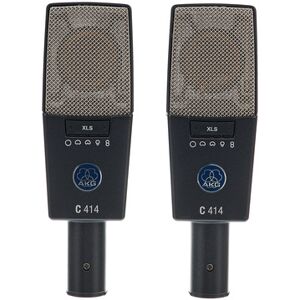 AKG C414 XLS Set Stéréo, Micros à condensateur larges membranes appairés @+*Ensemble stéréo composé de 2 microphones à condensateur C414 XLS large membrane*@+, Successeur du C 414B XLS, Avec 9 directivités commutables : cardioïde, cardioïde large, hypercardioïde, omnidirectionnelle, figure en huit + 4 positions intermédiaires), Réponse en fréquence : 20 - 20 000 Hz, Niveau de pression acoustique : 140 dB Max, Mode verrouillage pour la sauvegarde des réglages, Affichage du maintien de crête, LED de statut, Trois filtres coupe-bas commutables (0/40/80/160 Hz), Trois niveaux de pré-atténuation (0/-6/-12/-18 dB), Sortie XLR sans transformateur (technologie FET), Dimensions (LxPxH) : 395 x 315 x 105 mm, Livré avec : suspensions élastiques (H85), barre de couplage stéréo H50, protections contre le vent W414X et boîtier de transport en aluminium, Disponible en option : filtre anti-pop PF 80 (non inclus)