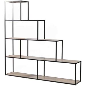 Calicosy Bibliothèque escalier 5 étagères L160 cm - Décor Bois et Métal Noir Noir 160x157x30cm
