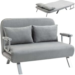 Homcom Canapé-lit convertible 2 places déhoussable métal suède gris clair Gris 111x78x80cm