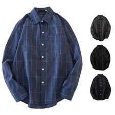 NONE Chemise à carreaux décontractée à manches longues pour hommes, chemise boutonnée à revers de printemps et d'automne