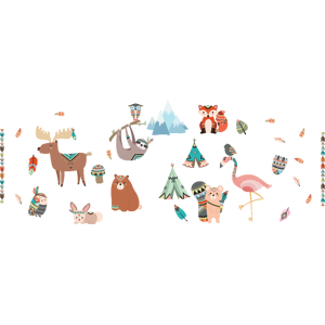 Des stickers animaux pour votre déco ! Avec les stickers muraux animaux multicolore et ce Stickers animaux des montagnes et plumes indiennes, vous vous approprierez enfin votre intérieur ! Dimensions des stickers animaux : La planche de H60 x L90 cm, le sticker chaine de montagne mesure H22 cm x L2