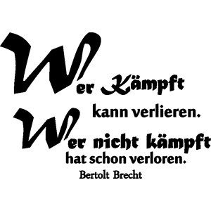 Des stickers muraux citations pour la déco ! Avec les stickers citation et ce Sticker citation wer kämpft kann verlieren ... - Bertolt Brecht, vous pourrez enfin décorer l'intérieur de votre cuisine à votre guise avec leur aide ! Laissez libre cours à votre imagination pour une décoration qui vous