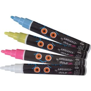 Craie liquide effaçable – Lot de 4 craies liquides blanche/bleue/jaune/rose - trait propre 3mm Descriptif du produit : -Non toxique -À base d’eau -Effaçable à sec ou à l’eau (comme une craie) -Largeur d’écriture 3mm Informations supplémentaires : Peut écrire sur: ardoise, tableau blanc, vitre, voit