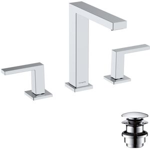 hansgrohe Tecturis E 3 trous mitigeur lavabo 73030700 Zone de confort 150 Projection 158 mm Hauteur du bec 173 mm Type de jet CascadeStream débit maximum à 3 bar 4 l/min Système de mélange en céramique adapté pour chauffe-eau garniture de vidange ouverte 1 G 1 1/4 Matériau du robinet de vidange : métal. Tuyaux de raccordement de type G 3/8 Taille de raccordement DN15