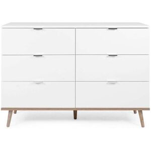 Caractéristiques produit: Commode équipée de 6 tiroirs, 1 poignée par tiroir. Couleur Blanc / plateau inférieur et pieds en chêne sonoma. Réalisé en Panneaux de particules, panneaux de fibres haute densité et MDF. Fabriqué en Europe (Pologne). Dimensions produits: Longueur 120 cm x Largeur 40 cm x Hauteur 86,5 cm. Dimensions colis : Colis n°1 : Largeur 131,5 cm x Longueur 52 cm x Hauteur 10 cm - Poids brut : 21,5 kg. Colis n°2 : Largeur 83 cm x Longueur 46 cm x Hauteur 15 cm - Poids brut : 22,7 kg.