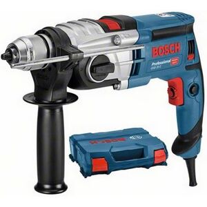 GSB 20-2 Professional - Perceuse a percussion Moteur puissant de 850 W pour une progression de travail rapide KickBack Control pour une meilleure protection de l’utilisateur Carter en métal robuste pour une grande longévité Inclus dans cette variante Mandrin automatique 13 mm Référence: 2 608 572 149 Poignée auxiliaire Référence: 2 605 025 190 L-CASE Butée de profondeur 210 mm Référence: 1 613 001 010 Caractéristiques techniques Données les plus importantes Puissance absorbée nominale 850 W Régime a vide, 1ere vitesse* 0 – 1.000 tr/min Régime a vide, vitesse 2* 3.000 tr/min Puissance débitée* 430 W Poids* 2,6 kg Vitesse de rotation nominale 800 / 2.060 tr/min Couple nominal 5,2 / 2,0 Nm Filetage de la broche de perçage 1/2"-20 UNF Plage de serrage du mandrin, min./max. 1,5 – 13 mm Fréquence de frappe a vide* 0 – 51.000 / 51.000 min-1 Couple maxi.* 36,0 / 15,5 Nm Dimensions de l’emballage (longueur x largeur x hauteur) 400 x 441 x 122 mm Mandrin de perçage, exécution Mandrin automatique, 13 mm Tension, électrique 230 V Porte-outils 1/2"-20 UNF Plage de perçage O perçage bois 40 mm O perçage acier 13 mm O perçage pierre 20 / 15 mm O de perçage dans la maçonnerie 20 mm Valeurs totales des vibrations (Perçage dans le métal) Valeur d’émission vibratoire ah 3 m/s2 Incertitude K 1,5 m/s2 Valeurs totales des vibrations (Perçage avec percussion dans le béton) Valeur d’émission vibratoire ah 15 m/s2 Incertitude K 2 m/s2 Valeurs totales des vibrations (Vissage) Valeur d’émission vibratoire ah 2,5 m/s2 Incertitude K 1,5 m/s2 Valeurs totales des vibrations (Taraudage) Valeur d’émission vibratoire ah 2,5 m/s2 Incertitude K 1,5 m/s2 * Vous en saurez plus sur les écarts en cliquant sur le lien suivant : Spécifications techniques de produits GSB 20-2 Professional: Informations complémentaires Points forts du produit La GSB 20-2 Professional est une perceuse a percussion filaire a 2 vitesses polyvalente avec KickBack Control. Son puissant moteur de 850 W assure une progression de travail rapide. La fonction KickBack Control intelligente améliore la protection de l’utilisateur. La perceuse a percussion possede également un carter d’engrenage robuste en métal qui lui confere une grande longévité. Équipement et application Cet outil est conçu pour les applications de perçage dans la maçonnerie, la pierre, le bois et le métal. Il est compatible avec le dispositif d’aspiration de poussiere GDE 16 Cyl Professional. Informations complémentaires La GSB 20-2 Professional dispose également d’un mandrin Autolock, d’un embrayage de sécurité et d’une présélection de vitesse.>