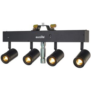 Eurolite LED KLS-60 WW Comp. Light Set, Ensemble compact de lampe blanc chaud, Barre ACL Style Bar avec 4 spots COB, Prise QuickDMX, 4x LEDs COB blanc chaud 3200K de 15 Watt, Ergot TV Ø 28mm et support Omega avec connecteurs Quick-Lock, Lampes avec un angle de faisceau de 5°, 2 filtres Frost par spot (15° et 22°) inclus, Contrôles : DMX (1, 3, 4, 5, 7 ou 8 canaux DMX), QuickDMX via USB (en option), télécommande IR (incluse), contrôle de la musique, fonction maître/esclave et autonome, Alimentation électrique : 100-240 Volt CA, 50/60 Hz, Charge totale connectée : 50 Watt, Classe de protection : IP20, Connexion électrique : entrée et sortie PowerTwist, DMX : entrée/sortie XLR 3 broches, Dimensions (L x H x P) : 51 x 21,2 x 12,1 cm, Poids : 4,20 kg, Livré avec télécommande infrarouge et sac de transport