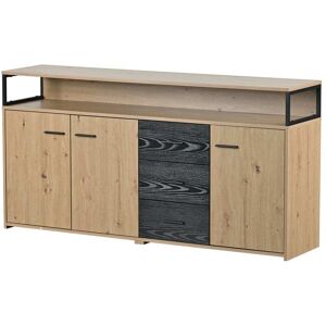 Buffet industriel effet bois avec 3 portes et 3 tiroirs rangement avec poignée métallique 150x35x75,9cm VAGNAD Rangement ouvert : les compartiments ouverts offrent des moyens élégants d'afficher des livres, des décorations ou des objets personnels.Construction solide : fabriqué à partir de panneaux de particules de haute qualité pour plus de stabilité et de durabilité – un meuble pratique et esthétique.Rangement généreux : trois tiroirs spacieux et trois portes offrent une variété d'espace de rangement pour garder vos articles organisés.Rangement polyvalent : ce buffet dispose d'étagères réglables et offre un espace de rangement personnalisable pour répondre à vos besoins. Organisez et affichez vos articles facilement.Applicable à divers scénarios : Avec des fonctions pratiques et une apparence attrayante, le buffet est un bon ajout à la cuisine, à la salle à manger, au salon, à la chambre ou au couloir. Veuillez noter qu'il peut y avoir des variations de couleur en raison des différentes conditions d'éclairage et des différents moniteurs !Espace de stockage et espace d'affichage suffisants : Le buffet avec trois portes et trois tiroirs augmente la capacité de stockage et l'espace d'organisation pour les nécessités quotidiennes telles que les livres, les vêtements, etc. Le dessus de l'armoire est une plate-forme parfaite pour ranger des lampes, des photos et des décorations. Caractéristiques :Matériel : Panneau de particulesCapacité de poids : 70kgDimensions du produit :150*35*75.9 cmDimensions du colis 2 colis:70.5*50.5*20.5 cm155*43.5*13 cmPoids net/brut : 50.5/54.5 kg Remarque : ce produit est livré en 2 colis, veuillez vous assurer d'avoir reçu 2 colis avant de l'assembler !Veuillez mesurer votre espace et la taille avant d'acheter. Merci pour votre compréhension!