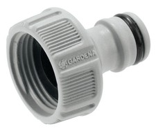 Adaptateur • Filetage 26.5 mm (G 3/4") and 33.3 mm (G 1") • L'adaptateur GARDENA est nécessaire pour la création d’un raccord de tuyau résistant durablement à la pression • Il est idéal pour le montage d’une électrovanne ou d’une prise d’eau enterrée • L'adaptateur convient aux robinets à filetage de 26,5 mm (G 3/4") et à filetage de 33,3 mm (G 1") ainsi qu'aux tuyaux de 19 mm (G 3/4") • Le collier de serrage fourni fixe le tuyau • L'adaptateur peut aussi être utilisé pour un raccordement entre une conduite de raccordement de 19 mm (3/4") et une conduite de raccordement de 25 mm au moyen du raccord 25 mm à filetage mâle 1" >