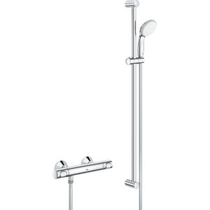 Grohe Precision Flow thermostat de douche avec set de douche 34842000 composé de : Mitigeur de douche thermostatique à débit précis (3484000) Montage mural Surface GROHE StarLight Verrouillage de sécurité GROHE SafeStop à 38°C GROHE SafeStop Plus, arrêt de température utilisable en option à 43°C Cartouche thermostatique GROHE avec thermocouple à expansion arrêt d'eau mitigée intégré Poignée de quantité avec GROHE EcoButton Haut 90° Sortie de douche inférieure à 1/2" Disconnecteur anti-retour intégré Tamis anti-saleté Intrinsèquement sûr contre le reflux Connecteurs S Rosaces en métal Technologie d'économie d'eau GROHE EcoJoy Vitalio Go 100 set de douche I, 900 mm (26 189 + 28 742 + 27 524) Douchette à main Vitalio Go 100 : Jet de douche à effet de pluie GROHE DreamSpray Jet de pulvérisation parfait Surface GROHE StarLight Système anticalcaire SpeedClean Alimentation en eau interne séparée L'anneau en silicone ShockProof protège contre Dommages causés par la chute de la douche convient aux chauffe-eau instantanés Système de fixation universel : Adapté à tous les flexibles de douche standards Flexible de douche Vitalioflex Trend 1 750 mm surface lisse et facile à nettoyer Résistance à la traction 500 N Résistance à la pression jusqu'à 5 bars Résistant à la chaleur jusqu'à 70°C Anti-pliage résistant aux plis 1/2" x 1/2" Surface GROHE StarLight Barre de douche 900 mm avec supports muraux Planeur et pièce de joint Surface GROHE StarLight Découvrez le thermostat intelligent qui maintient constante la température de l'eau souhaitée - pour une expérience de douche formidable et sûre dès la première seconde ! Avec son prix attractif, GROHE Precision Flow est la mise à niveau idéale pour augmenter encore le confort d'une douche avec thermostat. La cartouche thermostatique GROHE garantit une température de l'eau constante sans fluctuations indésirables. Il offre également une protection à toute la famille grâce à la technologie GROHE SafeStop : le limiteur de température limite la température de l'eau à 38 °C afin que les enfants ne règlent pas accidentellement une température de l'eau trop élevée. Le limiteur de température GROHE SafeStop Plus en option limite la température de l'eau à un maximum de 43 °C. En cas de panne totale de l'alimentation en eau froide, un arrêt de sécurité automatique réduit le débit d'eau au minimum. GROHE EcoJoy réduit la consommation d'eau et d'énergie - et pour obtenir le jet complet, il vous suffit d'appuyer sur le bouton Eco. L'ensemble de barre de douche Vitalio Go 100 se compose d'une douchette à main d'un diamètre de 100 mm et d'un anneau en silicone ShockProof qui protège contre les dommages en cas de chute, d'une barre de douche de 920 mm de long et d'un flexible de douche de 1750 mm de long. La technologie GROHE DreamSpray garantit un débit d'eau uniforme lors de l'utilisation du jet Rain. Les buses...