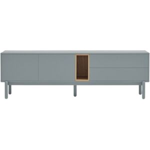Le meuble télé fait partie de ces meubles que l'on choisit principalement pour leur côté pratique : il faut bien quelque chose de solide pour accueillir sa télé ! Mais certains modèles, en plus d'offrir de beaux espaces de rangement, peuvent pimper un séjour et le rendre beaucoup plus joli. Un meuble fonctionnel ET esthétique, ça vous dit ? Alors découvrez vite le meuble TV à 2 portes et 2 tiroirs en bois Otto de Teulat. Ce meuble fabriqué au Portugal est pourvu de 2 grands tiroirs, d'une ouverture passe-câbles et de 3 niches de rangement : 2 fermées par des portes et une plus petite ouverte en partie centrale. Avec ça, vous êtes sûr de pouvoir bien ranger votre séjour.Côté design, on aime le mix de matières de ce meuble de 180 x 48 x 40,3 cm. Conçu en MDF laqué, il est doté de pieds fins en métal avec enduit poudré de 18,8 cm de haut et son plateau ainsi que l'une des 2 portes sont faits de MDF avec placage chêne naturel. Tout cela offre un style scandinave, très tendance depuis plusieurs années.On ne mentait pas quand on disait q