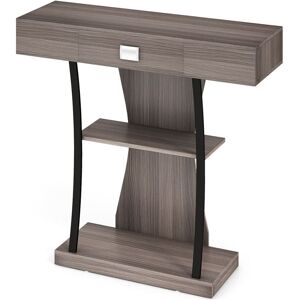 Attributs :Espace de stockage à 3 niveaux: Cette table de console dispose d’un plateau spacieux, de 2 étagères ouvertes et d’un tiroir avec poignée adaptée, qui offre un espace de rangement suffisant pour garder des livres, des plantes, des cadres photo,etc.Matériaux de qualité & Style industriel: Fabriquée en MDF de qualité et en panneaux de bois d’ingénierie épais, cette table d’entrée est robuste et capable de résister à l’épreuve du temps. La forme unique et le grain du bois lui confèrent un attrait industriel qui se marie bien avec vos meubles.Stabilité et sécurité exceptionnelles: Conçue avec une base stable et 2 tubes métalliques renforcés, cette table de console a une capacité de charge forte. De plus, le dispositif anti-renversement lui permet d’être fermement fixé au mur, ce qui empêche les oscillations.Table console polyvalente: Grâce à sa structure compacte et à son apparence attrayante, cette table console convient à l’entrée, au couloir, au salon, à la chambre, etc. Elle peut être largement utilisée comme table d’entrée, bout de canapé, table de buffet ou rack de rangement.Facile à assembler et à nettoyer: Cette table de console à 3 niveaux mesure 91 x 30 x 88 cm (L x l x H). L’assemblage se fait rapidement avec les instructions détaillées. De plus, la surface lisse est facile à nettoyer avec un chiffon humide.Caractéristiques :Table de console industrielle s’harmonise avec votre décor intérieurGrande capacité pour contenir des livres, des vases, des photos et des décorationsÉtagère spacieuse et ouverte à 2 niveaux pour un accès facile aux articlesTiroir avec des glissières métalliques et une poignée pour une ouverture facileTable de console en MDF sélectionné assurant une longue duréede vie2 tubes métalliques épaissis pour fournir un support extra solideSpecifications :Couleur: Brun RustiqueMatériau: Métal, MDF, Bois d’ingénierieDimension totale: 91 x 30 x 88 cm (L x l x H)Dimension intérieure du tiroir: 35 x 23,5 x 6cm (L x l x H)Capacité de poids du plateau: 30 kgCapacité de poids du tiroir: 15 kgCapacité de poids de chaque étagère: 15 kgPoids net: 17 kgLivraisons :1 x Table de console1 x Instruction