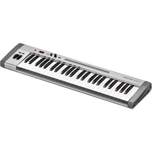 Swissonic EasyKey 49, Clavier maître MIDI, 49 grandes touches sensibles à la vélocité, Boîtier en aluminium avec pans latéraux en matière plastique, Molettes de Pitch Bend et Modulation, Ecran LED, 1 curseur pour réglage de volume, 1 encodeur rotatif programmable, Boutons Octave, 1 connexion pour pédale, 1 sortie MIDI, Dépôt pour tablette intégré dans le boîtier, Alimentation via USB, Compatible Windows Vista, XP (à partir de SP1), Windows 7, Windows 8, Windows 10 et Mac OS X, Dimensions: 825 x 210 x 68 mm, Poids: 4,77 kg, Câble USB de 1 m incl.