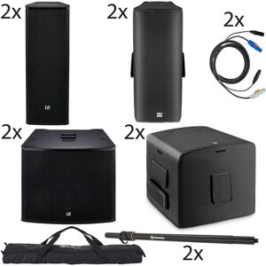 "LD Systems Stinger 282/18 Gala Set@+*Offre Bundle comprenant*, 2x LD Systems Stinger Sub 18A G3@+*Caisson de basse actif*, Caisson de basse actif Bass-Reflex avec haut-parleur 18"", DSP intégré, Amplificateur de puissance intégré de classe D, Puissance: 800 Watt RMS / 1600 Watt crête, Niveau de pression acoustique max.: 135 dB, Réponse en fréquence: 35 - 200 Hz, DSP intégré avec les circuits de protection suivants: limiteur, surchauffe, surtension, surintensité, Coupe-haut commutable à 80 Hz, 100 Hz et 120 Hz, Mode cardioïde commutable, Panneau de connexion avec 2 entrées combinées micro/ligne, 2 sorties XLR, entrée et sortie Power Twist, Boîtier en contreplaqué de 18 mm, Taraudage M20 pour tube de liaison, Dimensions: 677 x 547 x 740 mm, Poids: 42,6 kg, Housse de protection adaptée #409338# optionnelle non fournie, Plateau à roulettes adapté #409340# optionnel non fourni, 2x LD Systems Stinger 28A G3@+*Enceinte active large bande*, Boîtier Bass-Reflex, 2 haut-parleurs 8"", DSP intégré, Amplificateur de puissance de classe D, Puissance: 500 Watt RMS / 1000 Watt crête, Niveau de pression acoustique max.: 131 dB, Réponse en fréquence: 58 - 20 000 Hz, DSP intégré avec les circuits de protection suivants: limiteur multibande, surchauffe, surtension, surintensité, Modes de fonctionnement commutables: Full-Range, Satellite, Monitor, Flat, Tweeter BMS, Angle de dispersion (H x V): 90° x 50°, Panneau de connexion avec 2 entrées combinées microphone/ligne, 1 sortie XLR, connexion d'alimentation Power Twist, Boîtier en multiplex, Double admission de 36 mm pour montage sur pied, Points de montage aérien M10, Dimensions: 270 x 756 x 290 mm, Poids: 20,5 kg, 2x Sommer Cable Monolith1 Power Twist/XLR 2,5m@+*Câble combiné Power Twist / XLR - 5m*, Câble combiné audio + puissance, Section puissance: 3 x 1,5 mm², Convient aussi pour DMX 512, Fiches XLR mâle / entrée Power Twist vers XLR femelle / Sortie Power Twist, Longueur: 2,5 mètres, 2x LD Systems Stinger 28 G3 PC@+*Housse de protection*, Convient pour Stinger 2x 8"" G3, En nylon, Rembourrage de 8 mm, Dimensions : 290 x 750 x 310mm (L x H x P), Poids : 0,7 kg, Couleur : noir, 2x LD Systems Stinger Sub 18 G3 PC@+*Housse de protection*, Convient pour caisson de basses LD Systems Stinger Sub 18 G3, Rembourrage épais de 8 mm, Dimensions (L x H x P): 576 x 470 x 625 mm, Poids: 1,5 kg, Couleur: noir, Roadworx Slim Line Speaker Stand Bag@+*Sac de transport*, Pour 2 supports d'enceinte Roadworx Slim Line, Rembourrage en mousse, En Cordura (nylon robuste, résistant à l'abrasion et hydrofuge), 2 poignées, Pieds en plastique, Dimensions extérieures (L x l x H): 1000 x 200 x 150 mm, Dimensions intérieures (L x l x H): 940 x 165 x 85 mm, Poids: 0,85 kg, Couleur: Noir, 2x Roadworx Multi Pole@+*Tube de liaison pour enceinte*, Longueur réglable d'env. 880 à 1360 mm, Goupille de sécurité, Diamètre de l'extrémité supérieure: 35 mm, Extrémité inférieure adaptée aux supports avec embase de 35 mm ou M20, Poids: 1,2 kg, Couleur:...
