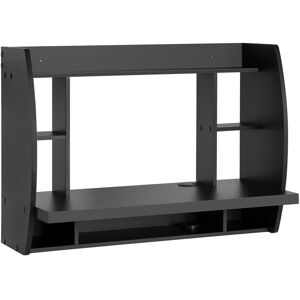 Bureau Table murale avec étagère. Grande espace pour vos rangements !Passe cable fil plastique sur plateau pour traverser les fils électriques.Installation murale. Avec des caches écrous.Matériau : panneau de copeaux avec revêtement noir. Dimensions : L82xP39xH60cm. Capacité Max : table : 75kg. étagère: 10kg.Facture fournie.