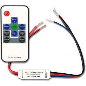 Mini contrôleur sans fil RVB bande LED, 3 canaux, 12-24 V DC 3x2 A: Longueur: 40mm, Largeur: 12mm, Hauteur: 5mm, Poids net: 35g, Tension nominale: 12-24V DC, Classe de protection: IP20, Illuminant inclus: Non, Particularités: Télécommande radio avec batterie incluse, le dernier réglage sélectionné est conservé lorsque l'alimentation est coupée