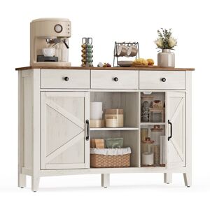 [Style campagne] Le mélange harmonieux des couleurs blanc et marron et les portes de style ferme en font ce meuble de salon chic pour votre espace détente, mais aussi un meuble de rangement pour votre cuisine, ou une console pour votre couloir[Nombreux rangements] Avec 3 tiroirs spacieux permettant de ranger vos affaires, 1 plateau généreux pour mettre en valeur vos décorations et 2 placards inférieurs spacieux pour les objets plus volumineux, ce buffet répond à tous vos besoins[Conception réglable] Ce meuble de cuisine est équipé des séparateurs de tiroirs réglables, pour personnaliser l’espace des tiroirs. Le placard inférieur est doté d’une étagère réglable sur 5 hauteurs, pour ranger des objets de toutes tailles[Fait pour durer] Fabriqué en panneaux d’aggloméré et panneaux MDF de qualité, ce meuble de salon assure à la fois stabilité et longévité, et permet de garder votre intérieur organisé et pratique, année après année[Détails bien pensés] Priorisant votre sécurité et votre confort d’utilisation, ce meuble de rangement est équipé d'un kit anti-basculement pour une meilleure stabilité, de 3 trous passe-câble et de pieds hauts pour faciliter le nettoyage en dessous[Petite remarque] Si de l'eau est renversée sur le plateau supérieur, essuyez-la immédiatement avec un chiffonCaractéristiques :- Couleur : Blanc rustique, marron miel- Matériaux : Panneau MDF, panneau d’aggloméré- Dimensions : 40 x 114,5 x 80 cm (P x L x H)- Poids : 36,5 kg- Capacité de charge statique maximale du dessus : 90,7 kg- Capacité de charge statique maximale de chaque tiroir : 4,5 kg- Capacité de charge statique maximale de chaque étagère réglable : 13,6 kgLivraison :- 1 x Buffet- 1 x Kit de montage- 1 x Dispositif anti-basculement- 1 x Mode d’emploiPrécautions de VASAGLE :- Pour des raisons de sécurité, veuillez fixer le meuble de rangement au mur avec le dispositif anti-basculement fourni.