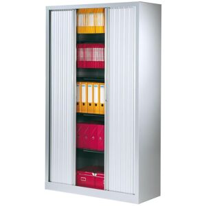 Armoire à rideaux Aluminium modèle haut L.1200 mm équipé de > Rideaux à lames en polypropylène et de 4 tablettes. > Structure monobloc en tôle acier 8/10ème > 4 tablettes métalliques réglables tous les 25 mm. > Serrure 3 points. Caractéristiques techniques > Finition peinte coloris Aluminium. > Structure soudée en usine. > Tablettes compatibles pour le stockage de dossiers suspendus. <