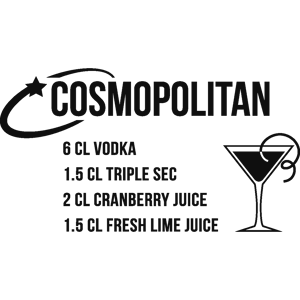 Des stickers muraux pour la déco de votre cuisine ! Avec les stickers muraux pour la cuisine et ce sticker cocktail Cosmopolitan, vous pourrez enfin décorer l'intérieur de votre cuisine à votre guise avec leur aide ! Amusez vous avec cette merveilleuse recette. Où coller cet autocollant déco ? Cet
