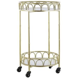 Donnez à votre maison un charme glamour avec cette desserte de cuisine à roulettes qui sert également de table. Exposez vos livres ou vos photos encadrées sur l'étagère du haut et utilisez l'étagère du bas pour ranger vos verres à vin ou des bouteilles. Le cadre en fer peint en or associé à des plateaux à effet marbre en font une décoration accroche regard pour un salon, mais aussi dans toute cuisine d'inspiration glamour. Avec cette desserte élégante, votre espace gagnera un look rétro tendance.