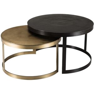 MACABANE 2 tables rondes gigognes aluminium noir doré pieds métal D75 Noir 75x46x75cm