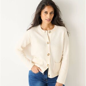 Gilet boutonné manches longues, maille fantaisie - BlancheporteAvec sa maille en point de blé, ce gilet insufflera une touche d'élégance discrète à votre tenue ! Porté comme une veste, il séduit par ses grands boutons effet corne et ses poches pratiques.